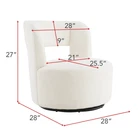 Specifications Place of Origin China Main Color Cream Main Material Plywood Filler Foam Product Style Modern Use Case Primary Living Space Dangerous Goods #dangerFlag# Dimensions & Weights Assembled Length (in.) 28.50 Assembled Width (in.) 28.00 Assembled Height (in.) 27.50 Weight (lbs) 38.00 Product Features 360° SWIVEL BASE: The swivel accent chair has a 360° swivel base that allows the round swivel chair to effortlessly provide swivel convenience. The elegant curved design and 360° swivel feature make this modern armchair a very unique sight in the living room, bedroom, office, nursery or bar. FRIENDLY MATERIAL: The frame materials meet standards, stronger and more durable.Our sherpa chair uses 100% Polyester, easy to clean, easy to maintain and care for, making it suitable for households. EASY TO ASSEMBLE: This barrel swivel chair is easy to make and can be assembled in 15 minutes or less. Swivel armchair overall size: 28.5'W x 28'D x 27.5'H. Seat size: 28.5'W x 22'D x 15”H. Weight Capacity:300lbs. TEDDY FABRIC BARREL CHAIR: This elegant swivel chair comes with Teddy Fabric which is soft enough and skin-friendly. Equipped with comfortable high-density foam cushions provides ultimate comfort and support. Description
