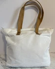 Cozy Earth Zipper White Canvas Tote Bag Brown Faux Vegan Leather Handle NEW NEW Bag ONLY, no sheets. Thank you for looking and supporting my small business!