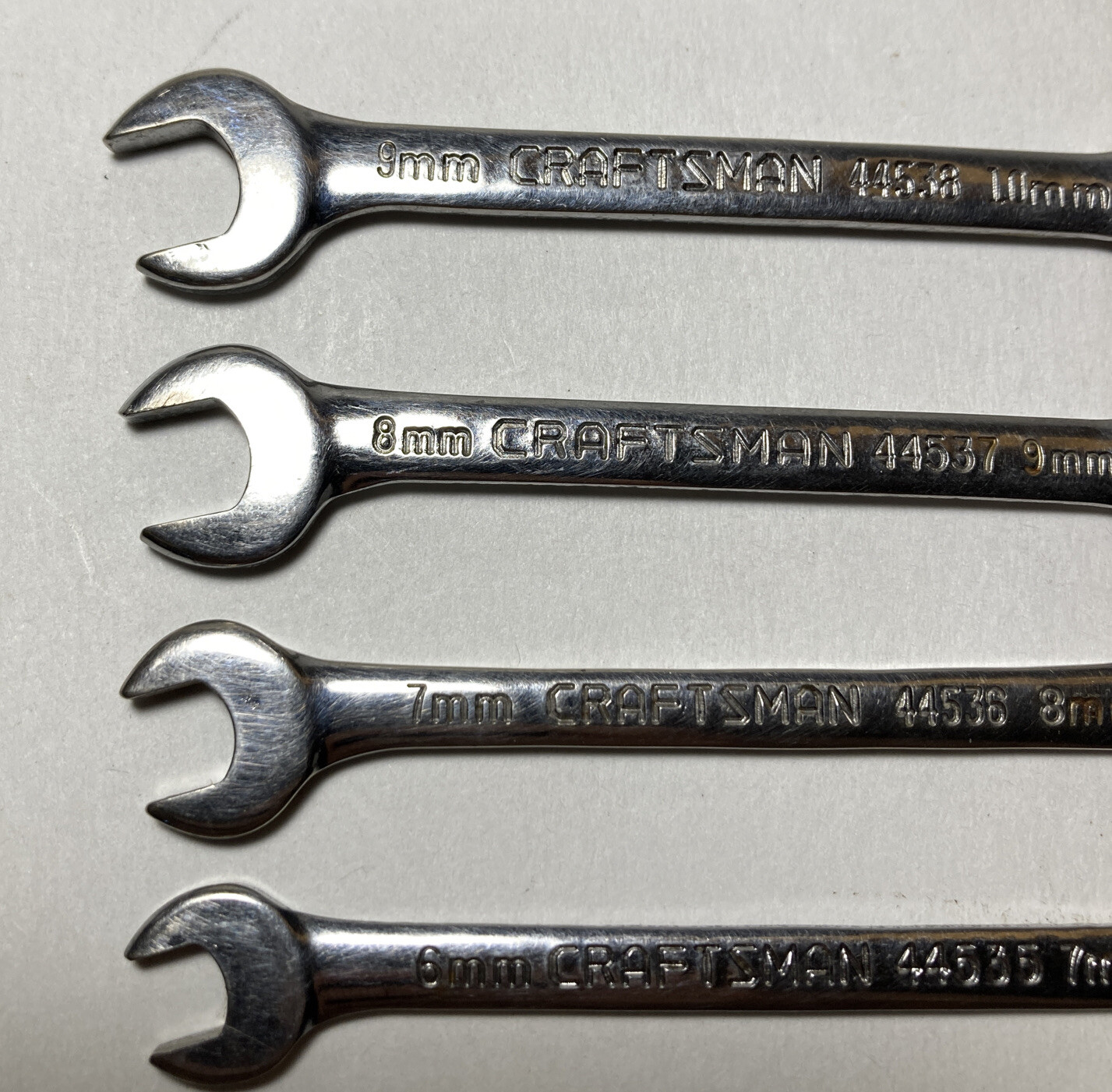Craftsman Small Combination Wrench Set 8 Piece 10mm-4mm Lot. The set is in overall good condition. Please view the pictures for full description of what sizes are included. The lot will ship out safely and securely the same or next business day.