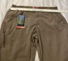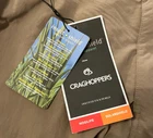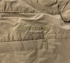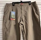 Craghoppers Insect Shield Pants in Pebble Khaki, size 42 Regular, are designed for travel and outdoor activities. Featuring an elastic waist, comfortable fit, and various pockets including cargo and slash pockets, these khaki pants are perfect for summer, fall, and spring seasons. Made of Polyamide material in Bangladesh, they have a tapered leg style and a solid beige color with button accents. Ideal for camping and hiking, these pants are new with tags.