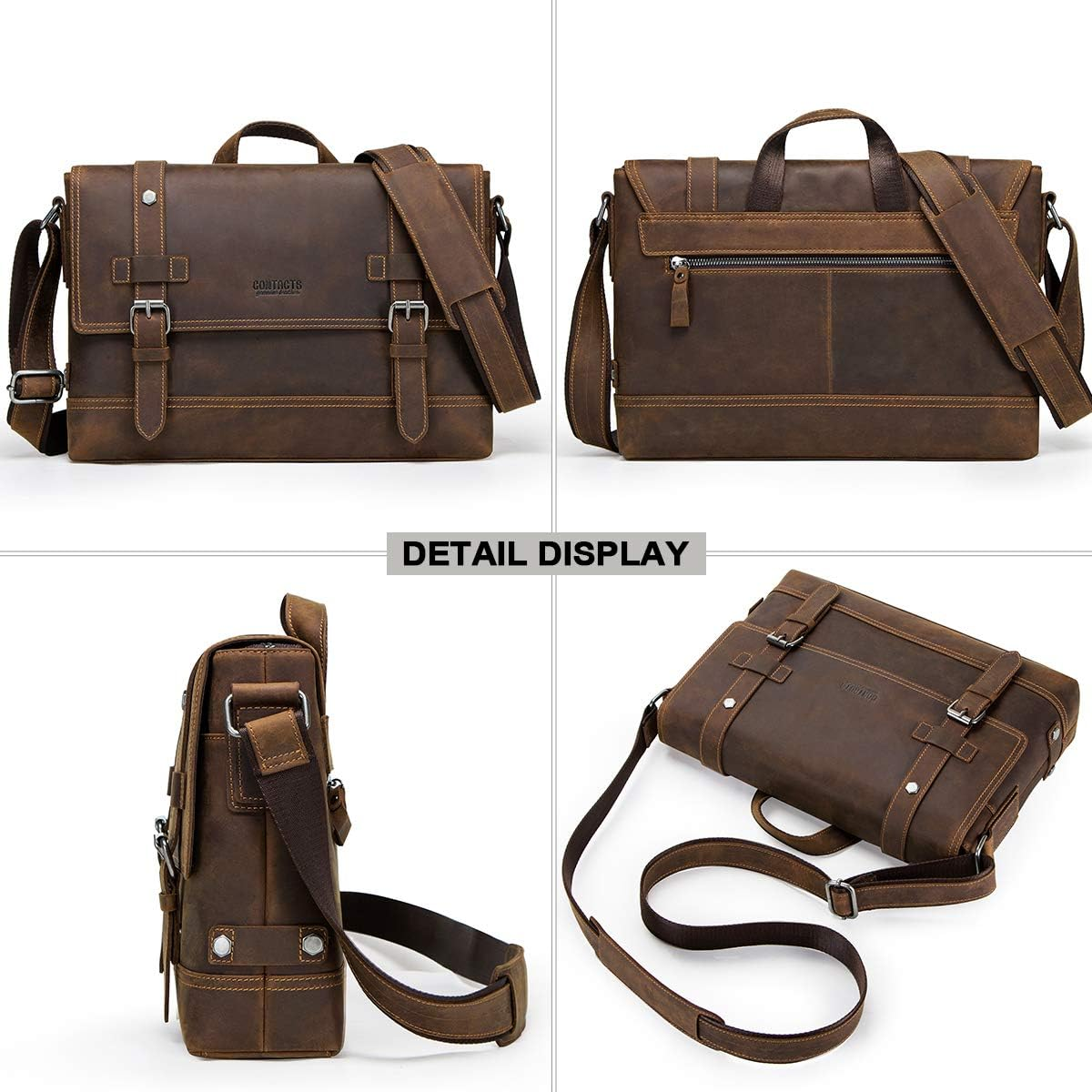 $ 18.4617.3Inch Mens Black Leather Laptop Messenger Bag for Work & Travel