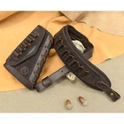 Leather Gun Buttstock 【Material】Made of crazy horse cowhide and suede leather, soft neoprene inner cushion for non-slip, heavy-duty stitching and durable. 【3/4" and 1/4" Height Cheek Raise Pad】Comes with 1pcs 3/4" cheek riser neoprene pad to match corresponding gun scope, helps you aim at the target comfortly; and 1pcs 1/4" pad to keep a flat structure when you don't use gun scope. 【Reduce 60% Buffer Force】Provides 4 pieces neoprene cushions reduces up to 60% recoil felt. Greatly improves shoulder comfort and shooting accuracy. 【Caliber .308 .30-06 .45-70】Fit for 5 Rounds .308 .40-65 .45-70 .22-250 .30-06 .300WIN, .40-40 .40-60 .40-65 .40-70 .44mag, .45 Long Colt, 7MM REM 6.8 SPC and .410 sho tgun bullets as well. 【Caliber .357 .30-30 .38】Fit for 6 Rounds .357, .30-30, .35, .38 .32Win Spcl.32-40. 【Caliber .22LR .22MAG .17HMR】Fit for 11 Rounds 22LR .22MAG .17HMR 【12GA Gun Buttstock Holder 】Fit for 4 Rounds 12GA. 【Fit for Lefty or Righty Hunter】Allow free switching shell holder cover. If you are righty hand shooter, please switch the shell slots cover to the right side, let your cheeks comfortably close to the gunstock. 【Package Include】1pcs Rifle Buttstock, 4pcs Neoprene Pad, 1pcs 3/4" Thickess Cheek Riser Pad, 1pcs 1/4" Thickness Cheek Rest Pad. Leather Gun Sling 【 Material】Made of crazy horse cowhide and suede leather, he sling boasts a wider soft shoulder padding that evenly distributes the weight of your gun and relieves pressure on your shoulders, making it more comfortable to carry for extended periods. 【Fit 1" Sw ivels】Ou r shell holder gun sling can be adjustable length from 32 1/4" to 41 3/4". (Both ends of the shoulder strap are 1 inch wide, suitable for most rifle swivels.) 【Leather Hand Loop】Leather Thumb loop provides added stability while walking. The sling boasts a wider soft shoulder padding that evenly distributes the we ight of your gun and relieves pressure on your shoulders, making it more comfortable to carry for extended periods. 【Caliber .308 .30-06 .45-70】Fit for 8 PCS .308 .40-65 .45-70 .22-250 .30-06 .300WIN, .40-40 .40-60 .40-65 .40-70 .44mag, .45 Long Colt, 7MM REM 6.8 SPC and .410 shotgun bullets as well. 【Caliber .357 .30-30 .38】Fit for 10 PCS.357, .30-30, .38 .32Win Spcl.32-40. 【Caliber .22lr .22mag .17hmr】Made for 15 PCS.22, .22LR, .22MAG, .17 hmr Cartridge Holder. 【12GA Shell holder Shotgun Sling 】:This sling is specially made for 6 PCS bullet models such as 12 Guage.Note that 20GA and 16GA are not available. 【Package include】1pcs Padded Leather ammo holder sling.
