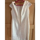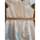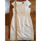This gorgeous, worn once, Taylor dress, 100% linen and lined is perfect for summer, vacation, or a bridal event. It is is elegantly structured with ruffles in front. Zips up back. Originally sold for $130+. There is a small mark on front, left side, picture included.