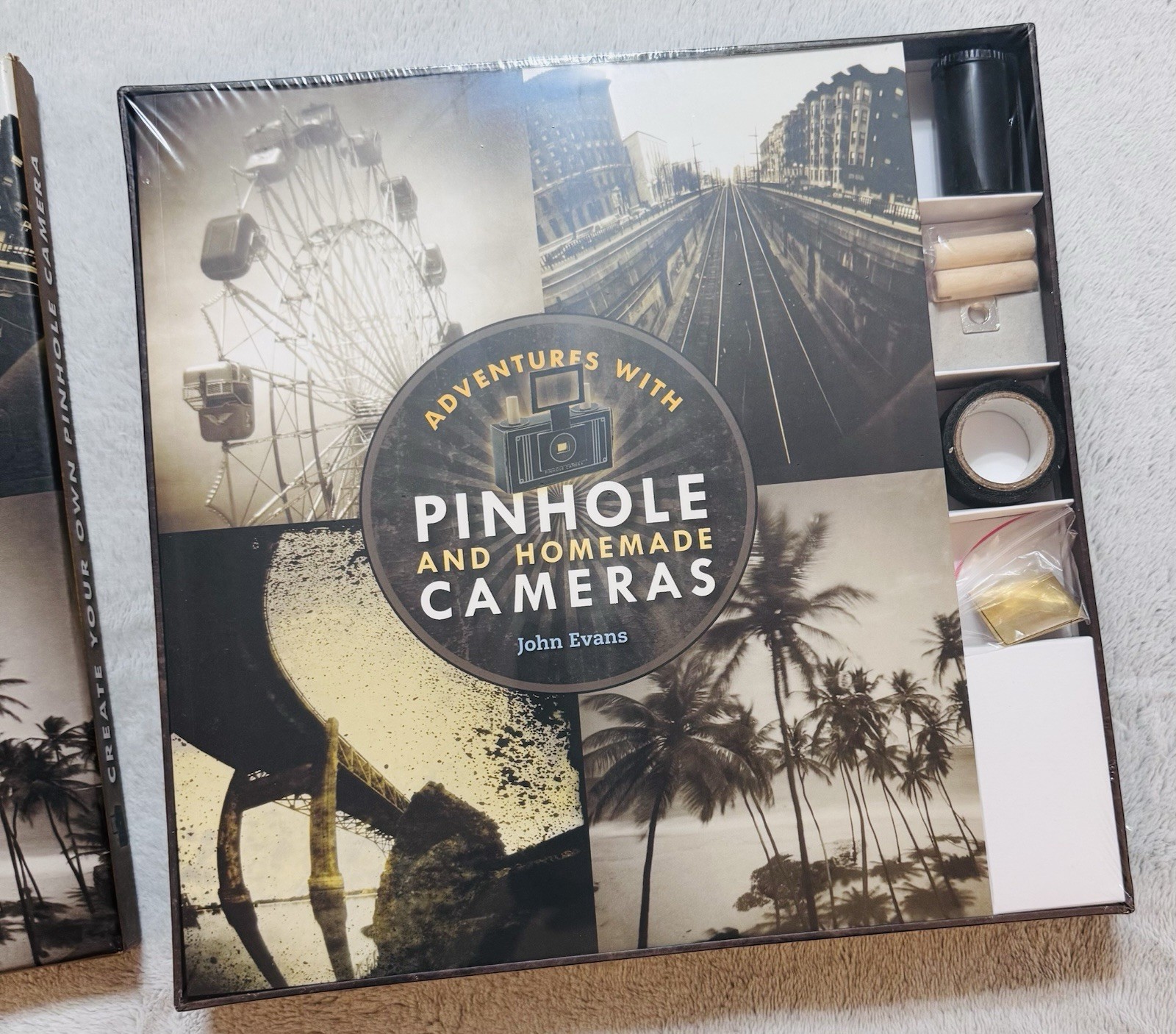 "Create Your Own Pinhole Camera" is a practical guide to building a pinhole camera from scratch. The book likely includes detailed instructions and diagrams to help readers successfully construct their own camera. With a focus on the Pinhole type of camera, this manual allows beginners to explore the world of photography in a unique and hands-on way through the process of creating their own custom camera. Perfect for photography enthusiasts looking to experiment with alternative methods of capturing images. Published by Sterling Innovation, 2015. ISBN 9781435114302 This boxed set includes everything needed to assemble a working pinhole camera and learn the art of pinhole photography: • Pre-cut cardboard camera pieces (for easy assembly) • Black photo tape • Two pre-punctured brass pinholes + one blank • Film cassette for easy rewind • Tripod mount • Instruction booklet with technical guidance and inspiring pinhole photography examples Great for collecting! Great for camera enthusiasts!! New in box/Sealed