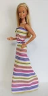 This listing is for the fashion/jewelry only. Doll and shoes are NOT included. All DOLLS4EMMA fashions are completely hand-sewn, to ensure quality stitching and detail, and are created in a non-smoking, pet-free home. =====DESCRIPTION===== This ensemble was designed to fit: THE 18" SUPER SIZE Fashion dolls such as the one shown. "SUMMER FLING" - Includes: DRESS, NECKLACE, EARRINGS AND BRACELET. DRESS: Full-length dress flares out towards the hem and features a sweetheart neckline. It is made with a beautiful, horizontally striped fabric in white, black, peaches, pinks and purples. It does up in the back with a small snap. NECKLACE, EARRINGS AND BRACELET: Matching jewelry set made on bendable wire for easy off/on fit. MOR E BE AUT IF UL IN PERS ON! =====COMBINED SHIPPING===== Additional Fashions/Jewelry ship for $1.00 each Please use shopping cart and request new total. Contact me if you are having a problem with combined shipping, as I can no longer refund over payments. THANK YOU! THANK YOU FOR LOOKING... Please contact seller if you have any questions. All sales are final. Payment is due within 3 days.