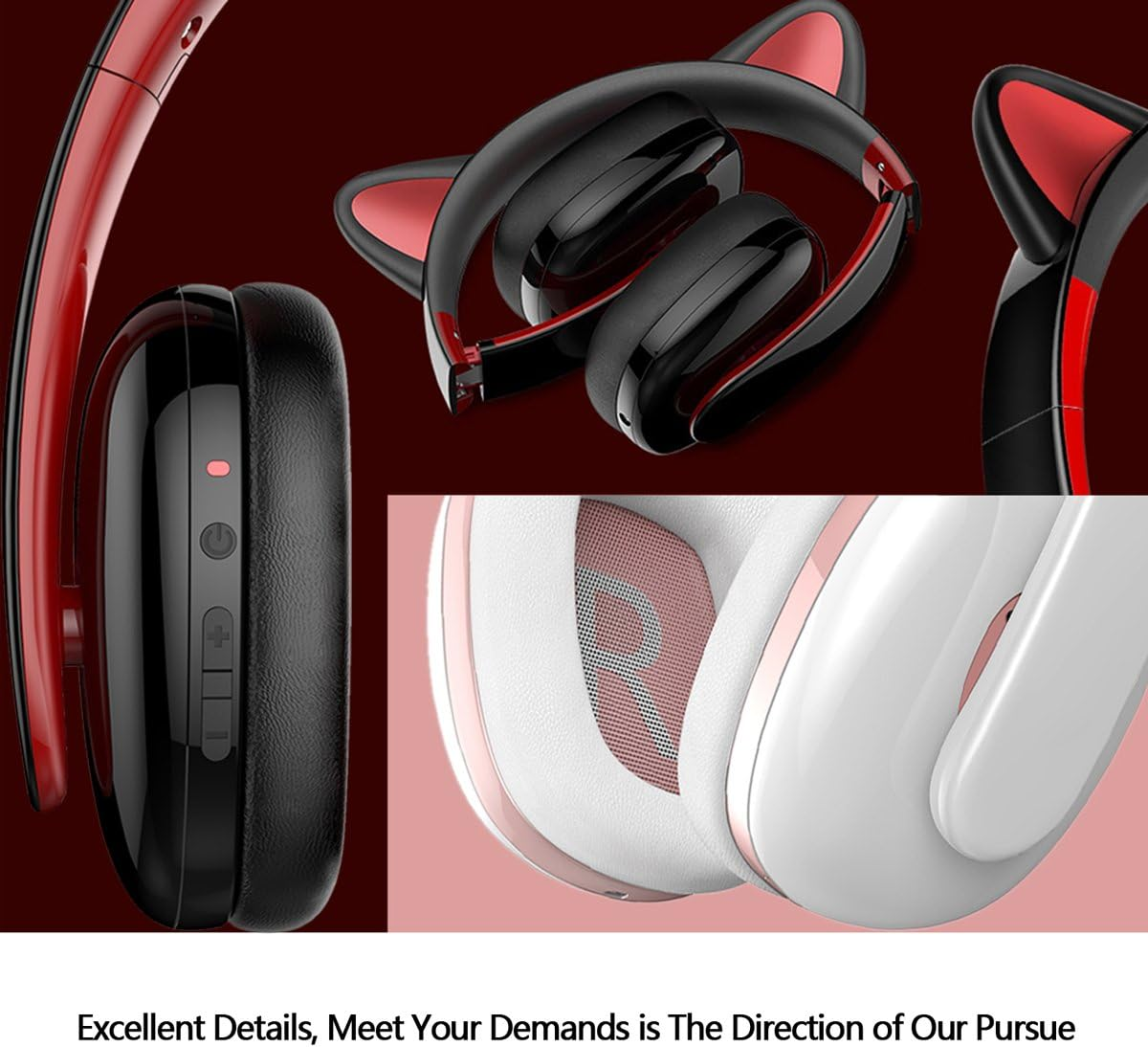 These cat ear headphones are so much fun! The sound quality is amazing with deep bass, and the noise cancellation works great. They're super comfy with soft leather padding, and the Bluetooth connection is smooth. Perfect for gaming or just jamming to music—plus, the cute design gets tons of compliments! The built-in mic is clear, and the battery lasts forever. Love them!