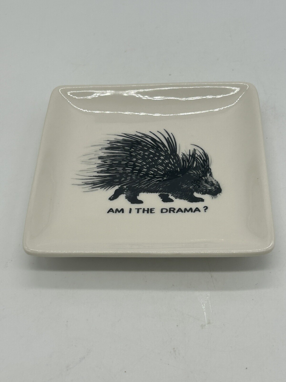 Creative Co-Op Chad Barrett 5" Square Stoneware Plate "AM I THE DRAMA"