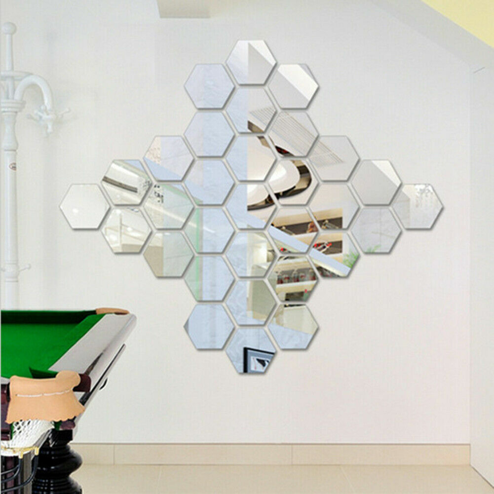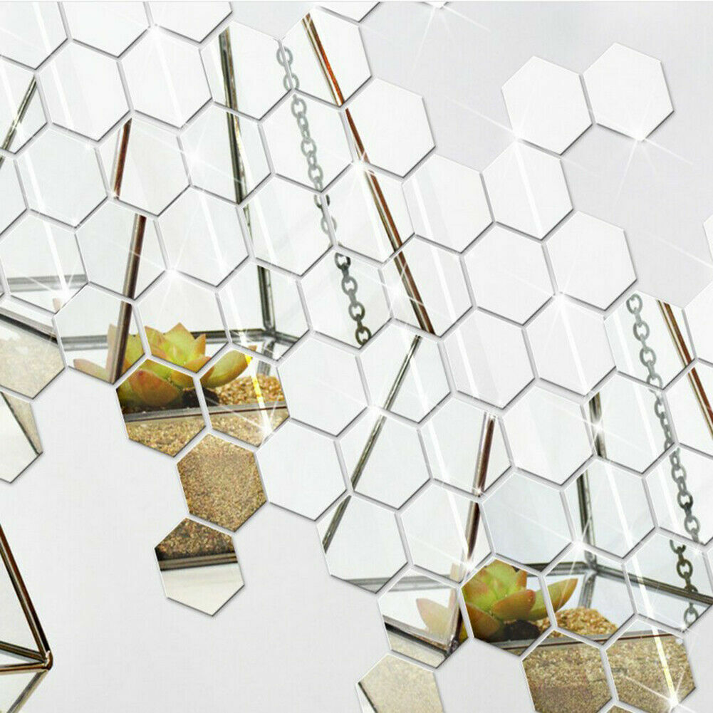 $ 1.423D Honeycomb Hexagon Mirror Wall Sticker DIY Home Decor Mural