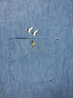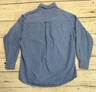 Introducing the Creekwood shirt for men in size L. This classic button-up shirt features a solid blue color and is made from lightweight cotton denim fabric. The shirt is perfect for any occasion, whether it be for travel, casual outings, or workwear. It has a regular fit and a button-down collar style, with a closure that is easy to use. The shirt also features an embroidered design, with accents that add a touch of style to the overall look. It is machine washable and has long sleeves, making it suitable for colder seasons. The shirt is made in the United States and has a denim fabric type. It is perfect for those who enjoy the outdoors and appreciate a classic, timeless look. The shirt comes with pockets and is ideal for any dad who wants to look stylish and feel comfortable. See pictures for condition and measurements for size.