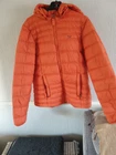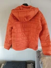 Embrace the essence of effortless style with the Crew Clothing Company's lightweight quilted jacket, tailored to fit a size 12. This mid-length garment, featuring a vibrant orange hue, offers a classic fit that pairs easily with your casual or travel attire. The jacket's long sleeves and polyester insulation ensure warmth, while the hood, detachable via a seamless zip, adds practicality to this chic piece. Crafted with durability in mind, the jacket's outer nylon shell is complemented by a snug polyester lining. Machine washable for easy care, this piece is designed for those who value both comfort and convenience. The quilted accents and sleek design without patterns make this jacket a versatile addition to your wardrobe, ready to accompany you through autumn, spring, and winter. Pit to pit is 19" Photo's form part of the description..
