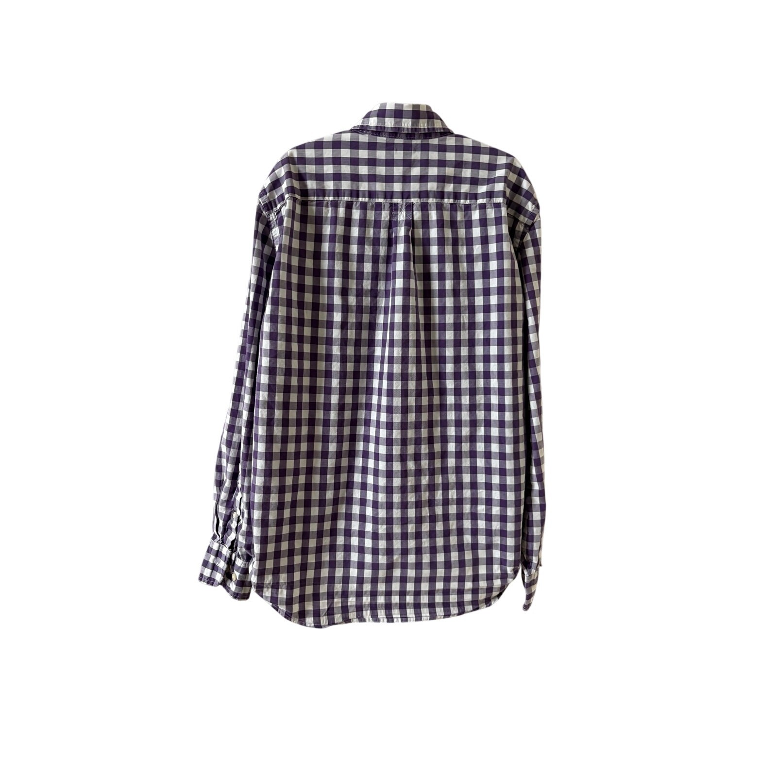 Discover this fantastic J.Crew Crewcuts button-down shirt, perfect for your young one! This stylish top features a charming purple and white gingham check pattern, making it an excellent choice for Easter, spring events, or any occasion where a touch of preppy style is desired. Crafted from 100% cotton, it offers both comfort and breathability for all-day wear. It's pre-owned and in good condition, showing no stains or holes, ready for its next adventure! This shirt is a boy's size 14. For an accurate fit, please note the approximate measurements: 19 inches from armpit to armpit and 26 inches in length. A wonderful addition to any wardrobe!