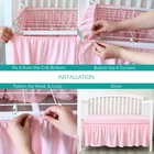 Product description Perfectly Fit: Measuring 52"x28"with 14" drop, your crib skirt fits all standard crib toddler bed. Easily reaching the floor and hide the storage space under the crib/toddler bed. Strong and lightweight, with reinforced stitching and durable fabric. Quality Materials & Well-crafted: Made of durable and soft microfiber, your crib skirt will always keep the shape and beauty. The crib skirt will not fade or pill no matter how many times you wash it. Easy On/Off Design: Extended hook & loop on both sides of the elastic makes the crib skirt easy to attach and detach from the crib. The crib skirt is surrounded by four sides and has no top cover. Corner buttons are adjusted to fit the crib/toddler bed and are firmer and less likely to fall out, you can quickly install the crib skirt without even lifting the mattress. Easy Care Instructions: Your crib skirt is machine washable. The maximum washing temperature: 40 degrees, do not bleach, no dry-cleaning. If possible, you can steam it (used a steam iron on a low setting ) before the first use, the crib skirt will be more beautiful. Biloban's Life-Time Guarantee: You can trust the quality of Biloban crib skirt. If the crib skirt does not meet your needs for any reason, replacement or money back, no questions asked. Handling & Delivery We offer Free Shipping on all orders! Your order will be shipped within 2 working days after receiving payment. In an unlikely event that your order is lost or damaged in transit, it is eligible for full refund or replacement. We ship to continental US address ONLY, we are unable to ship to PO Boxes or APO/FPO addresses. Return Policy If you are not satisfied when you receive your item, please contact us for a replacement or money back. If the item is defective, we will send you a replacement without any extra charge, or offer a full refund after we receive the defective item, but return shipping should be paid by buyer. All items qualify for returns within 30 days of receipt. Returned packages must be the original package. Biloban's Life Guarantee Biloban's quality you can trust, if your items does not meet your needs for any reason, replacement or money back, no questions asked! Contact us We will respond emails within 24 hours, within 36 hours on weekend. Please like and follow Biloban baby bedding on Instagram, Facebook and Youtube. On Jul 28, 2022 at 23:21:37 PDT, seller added the following information: