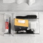 【LARGER SIZES】With 5 different sizes, our 26 pack clear drawer organizers could hold more gadgets, large and long enough to hold kitchen utensils, silverware, household tools and more. Includes: 4 pack large drawer organizer trays 15x6x2 inches, 5 pack 9x6x2 inches, 5 pack 6x6x2 inches, 6 pack 6x3x2 inches, 6 pack 9*3x2 inches. 【FOOD-GRADE QUALITY】Crafted from premium PET plastic, our desk drawer organizers are twice as sturdy as other fragile ones, and resistant to cracks and scratches. No smells, and safe as food storage, refrigerator pantry organizers and storage. (If quality fails, we'll provide you with a new complete set.) 【MULTI-USE】Measuring 2 inches high, these makeup drawer organizer for vanity could fit with all kinds of drawers, such as vanity/bathroom/kitchen/office drawers/ craft room, ideal for organizing cosmetics, makeup tools, hair accessories, jewelry, pins, office supply, craft supplies, utensils, etc. 【STACKABLE AND NON-SLIP】Our bathroom drawer organizer trays boast a wider base which means more storage space. Stack these organizers into one another to maximize the use of your drawer organization and storage space. The bonus silicone non-slip pads keep these organizing bins firmly in place when the drawer is suddenly opened or closed. 【MAINTAIN TIPS】 Our kitchen drawer organizers and storage bins are easy to wipe clean with a damp cloth, ensuring they stay crystal clear and crack-free for years of use. (Do not put into dishwasher.)