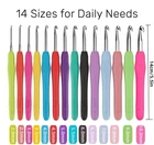 【What you get】This crochet hook kit includes 14 ergonomic crochet hooks,15 big eye sewing needles with 10 stitches markers,sizes are from 2.0mm to 10.0mm,meeting your different needs. 【Comfortable Grip】These crochet hooks for arthritic hands are made of sturdy material with soft handle,high quality for long time use.The crochet set greatly relieve or eliminate pain in the hands, wrists.The comfortable handle provides firm grip and allows you to crochet longer without pain. 【Complete Set】The crochet hooks set includes 14 sizes crochet hooks.Crochet hooks include:2.0mm,2.5mm,3.0mm,3.5mm,4.0mm,4.5mm,5.0mm,5.5mm,6.0mm,6.5mm,7.0mm,8.0mm,9.0mm,10.0mm.Each hook has its engraved size number,easy to recognize and use. 【Crochet Anywhere】All the crochet needles and crochet accessories are stored in the case.Compact and portable,easy to put into backpacks,bags,luggage.You can crochet at home or outdoor in travel. 【Great gift】With different color handles,these crochet hooks are unique and fun.It's a good choice as gift for friends/family members. 【Quality service】If you are not satisfied with the crochet set,please feel free to contact us,we will provide you with the best solution.