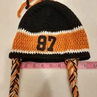 Teen/Adult Crochet Knit Bangel Color Orange Black White With Braids #97 Decal In good pre-owned condition may show signs of wear from use/handling/storage/display. Please view all pics for condition/details/flaws/issues. SOLD AS IS There is marks/spots/dirt/debris/Fuzz/ware to material please see photos 2-12, please see all photos for condition/issues/details. III