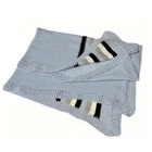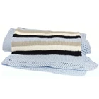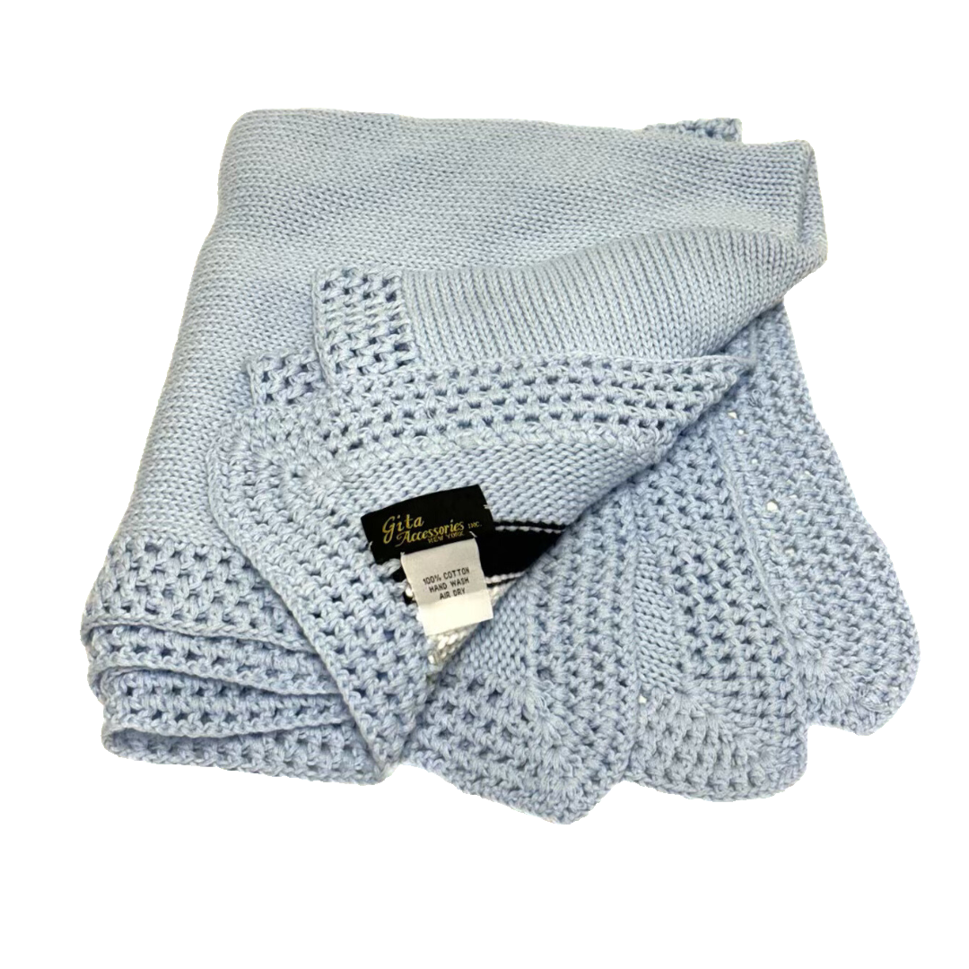 Brand : GITA Accessories , New York : Knitted / Crochet Baby Blanket : Perfect Covering for a Stroller , Crib or Nap-time Cover-Up . : Material : 100% Cotton ( See Picture # 3 ) Color : Light Blue with Navy Blue / White / Tan Stripes : Condition : Good Pre-Owned ( No Smells / No Stains ) : Dimensions : Length - 42in x Width - 31in : Care Instructions : On Attached White Fabric Tag ( Picture # 3 ) : Thank you for your interest . : Shipping : - Blanket will be securely packaged in a cushioned polymailer. - Mailed Within 3 BUSINESS DAYS ( Mon - Fri ) .