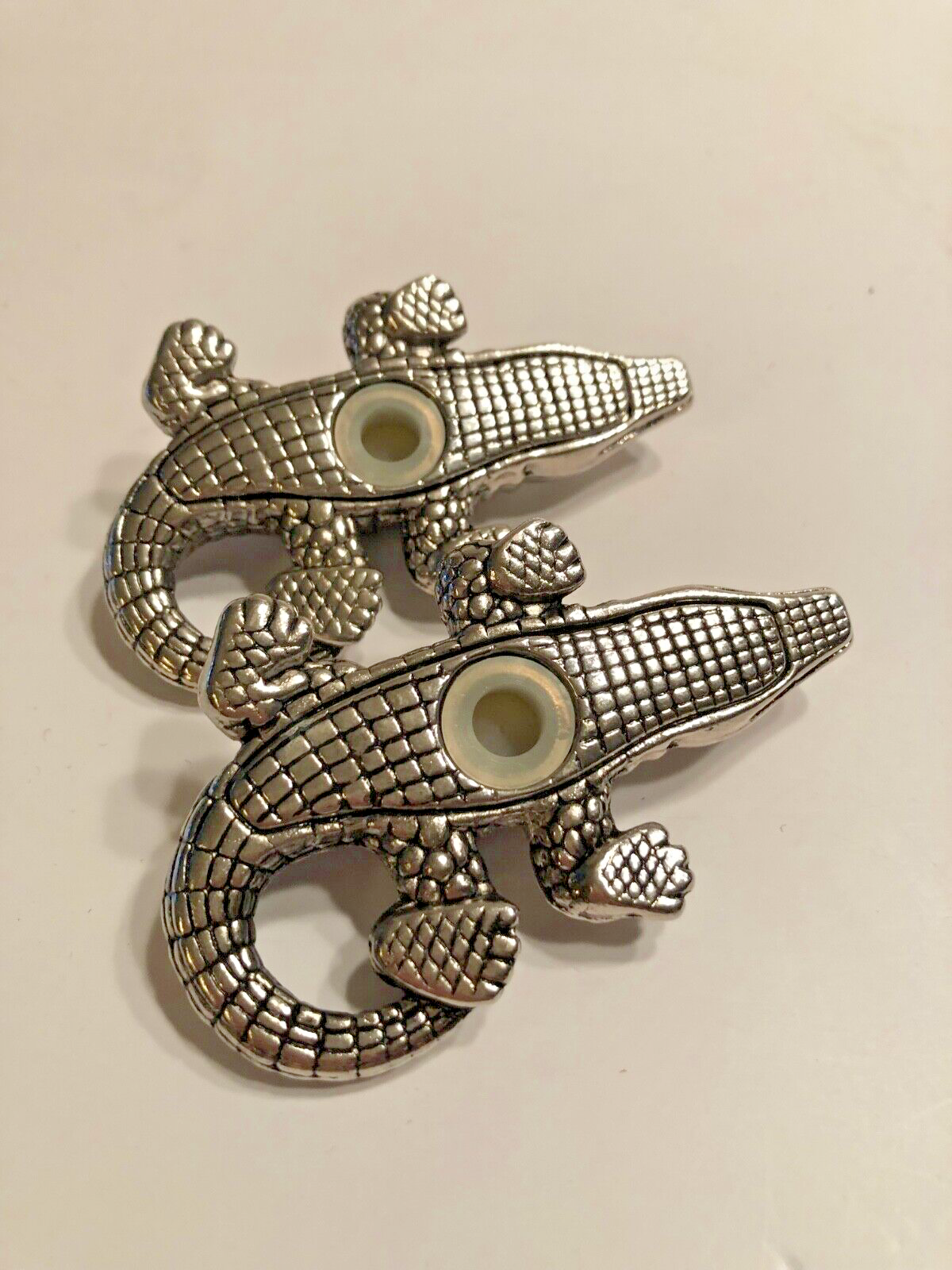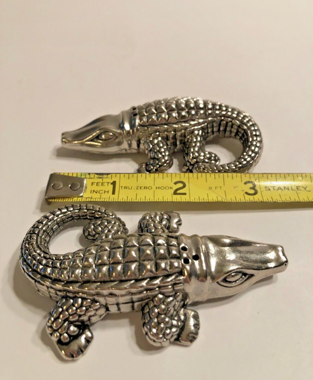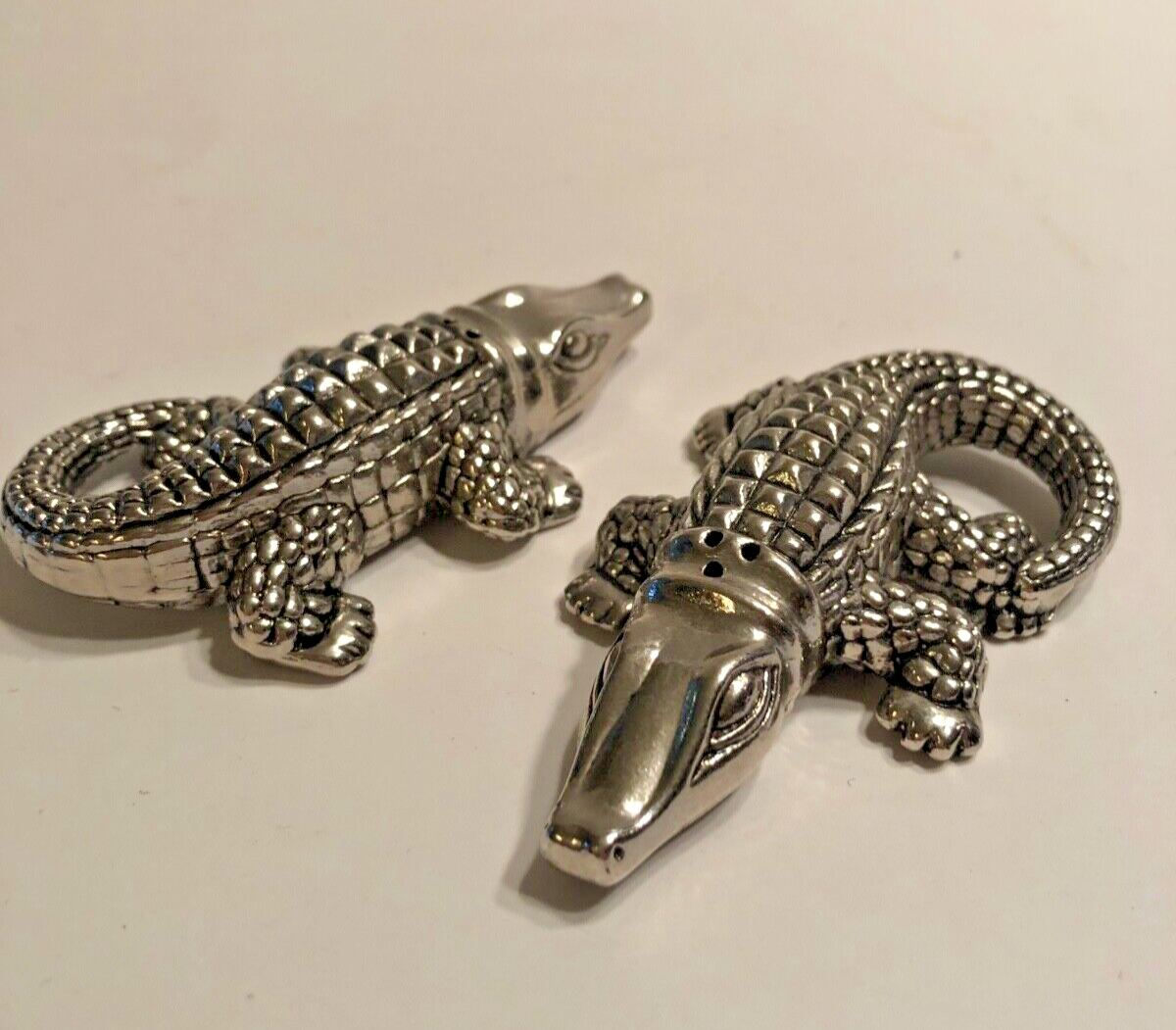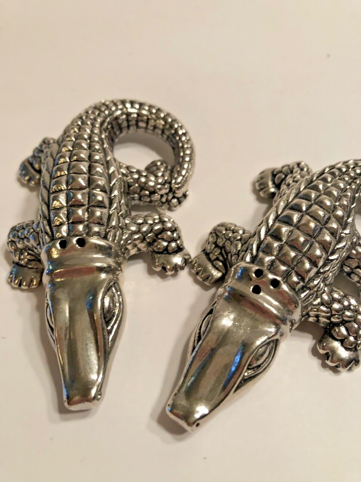 Add a touch of whimsy to your dining experience with these Crocodile Gator Chrome-Plated Cast Metal Salt & Pepper Shakers. Perfect for any occasion, their novelty design is sure to spark conversation and laughter at your table. The sleek chrome finish gives them a timeless look that's perfect for a modern or classic kitchen decor.Crafted with attention to detail, these unbranded shakers feature a unique crocodile shape that's both fun and functional. They come with a matching salt shaker, making them an ideal set for your next meal. A great gift or collectible for those who love novelty items with a twist.