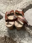 Elevate your style with these beautiful brick red Crocs A-Leigh slingback sandals. The adjustable strap and buckle closure provide a comfortable and secure fit, while the cushioned insole and cork outsole offer a comfortable and stable ride. These sandals are perfect for any casual occasion and will surely become a staple in your wardrobe. The upper material is made of high-quality leather and the lining material is also leather. The wedge heel style adds an extra boost of confidence to your look and the platform height is .75 inches. The shoe width is standard and the product line is Crocs A-Leigh.