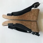 Crocs A-Leigh Womens 8 Leather Cork Wedge Heel Slingback Peep Toe Sandal Black