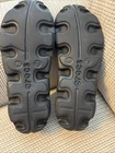 Excellent, like new slip on Clarks clogs, as pictured and described. Very attractive design and style. Insole very cushiony and supportive. Like the low rubber heel for stability and non-slippage. Well packaged and shipped in a timely manner. Good communication; recommend this seller.