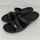 Step up your shoe game with these Crocs Patricia Wedge Sandals in classic black. Designed with a slip-on closure, these sandals are perfect for travel, activewear, casual outings, and workwear. The wedge heel offers a mid-height boost, while the strappy style and logo accents add a touch of flair. Crafted with rubber outsole and upper and insole material, these sandals feature cushioning that'll keep you comfortable all day long. Plus, they're lightweight, breathable, and suitable for all seasons. Get your hands on these Crocs Patricia Wedge Sandals in size 11, from the Crocs product line. 100% CUSTOMER SATISFACTION IS OUR GOAL! Our items are always carefully examined for condition, measured if necessary, and photographed in a climate controlled and smoke-free environment. We make every attempt to accurately describe and clearly picture the items we have for sale. Please, ALWAYS view all of the photos. We value your business and our goal is your complete satisfaction. FAST SHIPPING All items are packaged with care and shipped out the same or next business day via USPS, FEDEX, or UPS with tracking numbers so you are always informed. RETURNS We offer a 30-day return policy. All items must be unused and unopened in the condition in which they were received, with original packaging, and all accessories included for return. REVIEWS - CUSTOMER SATISFACTION - COMMUNICATION We aim to make you happy. After you receive your shipment, please leave a positive review . If you have concerns or questions about your order, please contact us so we can resolve the issue. We will do our best to make you satisfied. THANK YOU FOR YOUR BUSINESS!