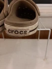 Crocs Classic Clog Tan Brown Size Men’s 6 Women’s 8 Shoes Slip On In good pre-owned condition may show signs of wear from use/handling/storage/display. Please view all pics for condition/details/flaws/issues. SOLD AS IS The white rubber trim has spots/dirt leaving cleaning to buyer. the bottoms have wear/drag on toe areas & heels & there is a small separation along the withe rubber trim please see photo 21 for this, please see all photos for details. There is/maybe marks/spots/dirt/debris please see photos 1-22, there is/maybe paint loss/sticker loss please see photos 1-22, there is lite discoloration please see photos 1-22, there are surface scratches to item please see photos 1-22, please see all photos for condition/issues/details.