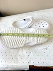 The Crocs Classic Clog is a unisex slip-on sandal designed for ultra-light comfort, featuring a solid white color with a modern logo accent. Made from Croslite material, these sandals are water-friendly and perfect for travel or casual wear during the summer, fall, and spring seasons. With a lightweight design and standard shoe width, these Crocs are ideal for those looking for a versatile and easy-to-wear footwear option.
