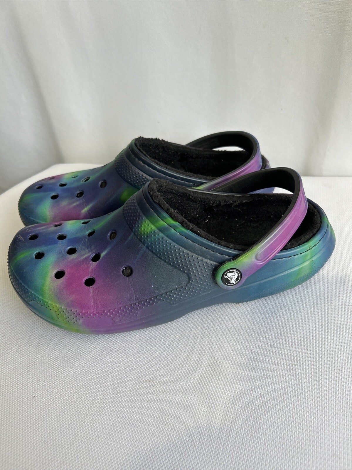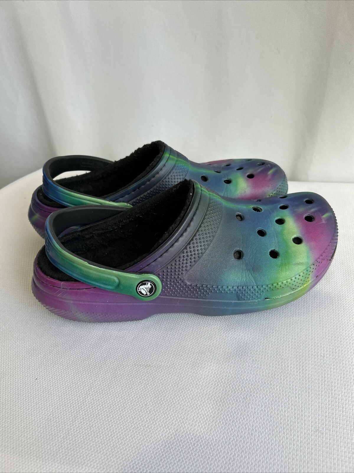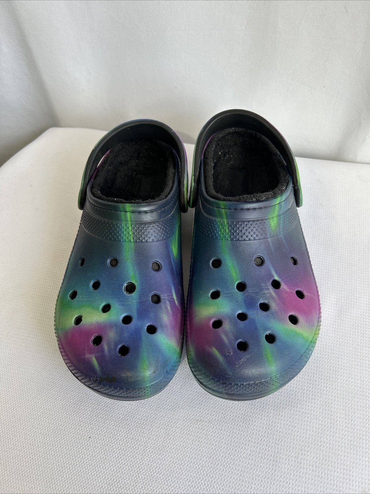 Theme:ClassicDepartment:WomenBrand:CrocsColor:MulticolorInsole Material:Faux Furgtin13:Does not applyCharacter:NaCustomized:NoUPC:Does not applyPattern:GalaxyVintage:NoType:ClogFeatures:LinedFabric Type:FleeceHeel Height:Low (1-1.9 in)Style:ClogLining Material:Faux FurUS Shoe Size:M9 W11Upper Material:Croslite