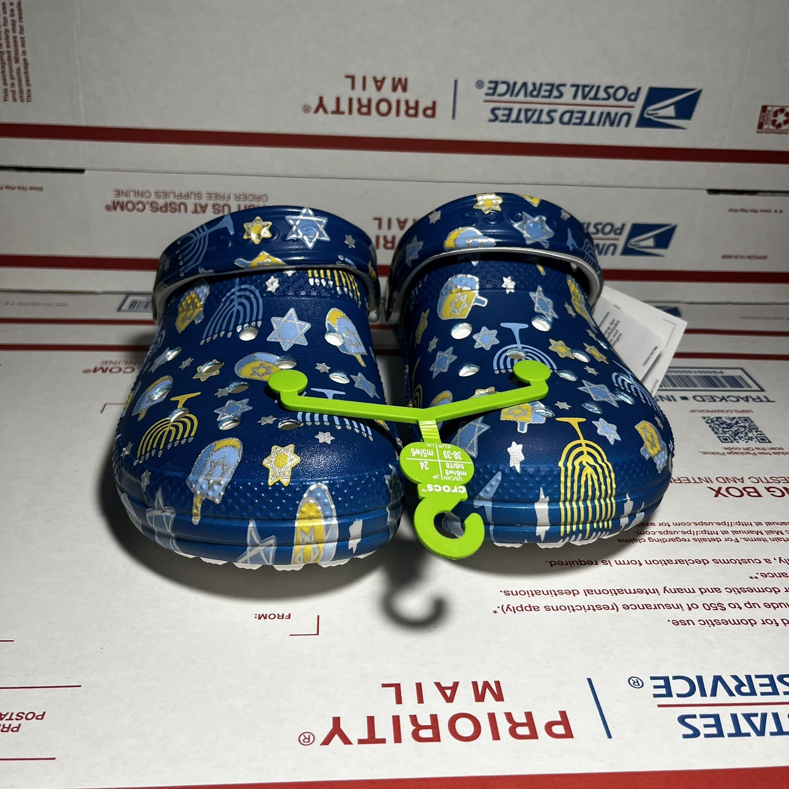 Crocs Classic Lined Holiday Clog Hanukkah Menorah Blue Star Men’s Sz 6 Wms Sz 8