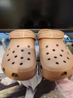 Elevate your summer style with these brown Crocs Classic clogs. Designed for both men and women, these lightweight and comfortable shoes feature a round toe shape and slip-on closure for easy wear. The synthetic upper material and lining ensure durability and longevity, while the standard shoe width fits most foot sizes. Perfect for casual occasions, these Crocs clogs boast a solid pattern and are suitable for fall, spring, and summer seasons. The outsole material is also synthetic, providing sturdy support for everyday wear. Add a touch of comfort to your wardrobe with these timeless and stylish Crocs Classic clogs.