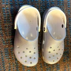 Crocs Clog Silver Unisex Comfort Sandals - Glitter Slip-On Shoes - Size 6 Step into comfort and style with these Crocs silver clogs, designed for both women and men. The lightweight, slip-on design ensures easy wear, while the glittery finish adds a fun and stylish touch. Perfect for casual outings, poolside, or a comfortable day at home, these shoes offer all-day comfort with the signature Croslite™ foam footbed. Key Features: Brand: Crocs Color: Silver with Glitter Detail Unisex Design – suitable for both women and men Size: 6 (US) Gently used, in great condition
