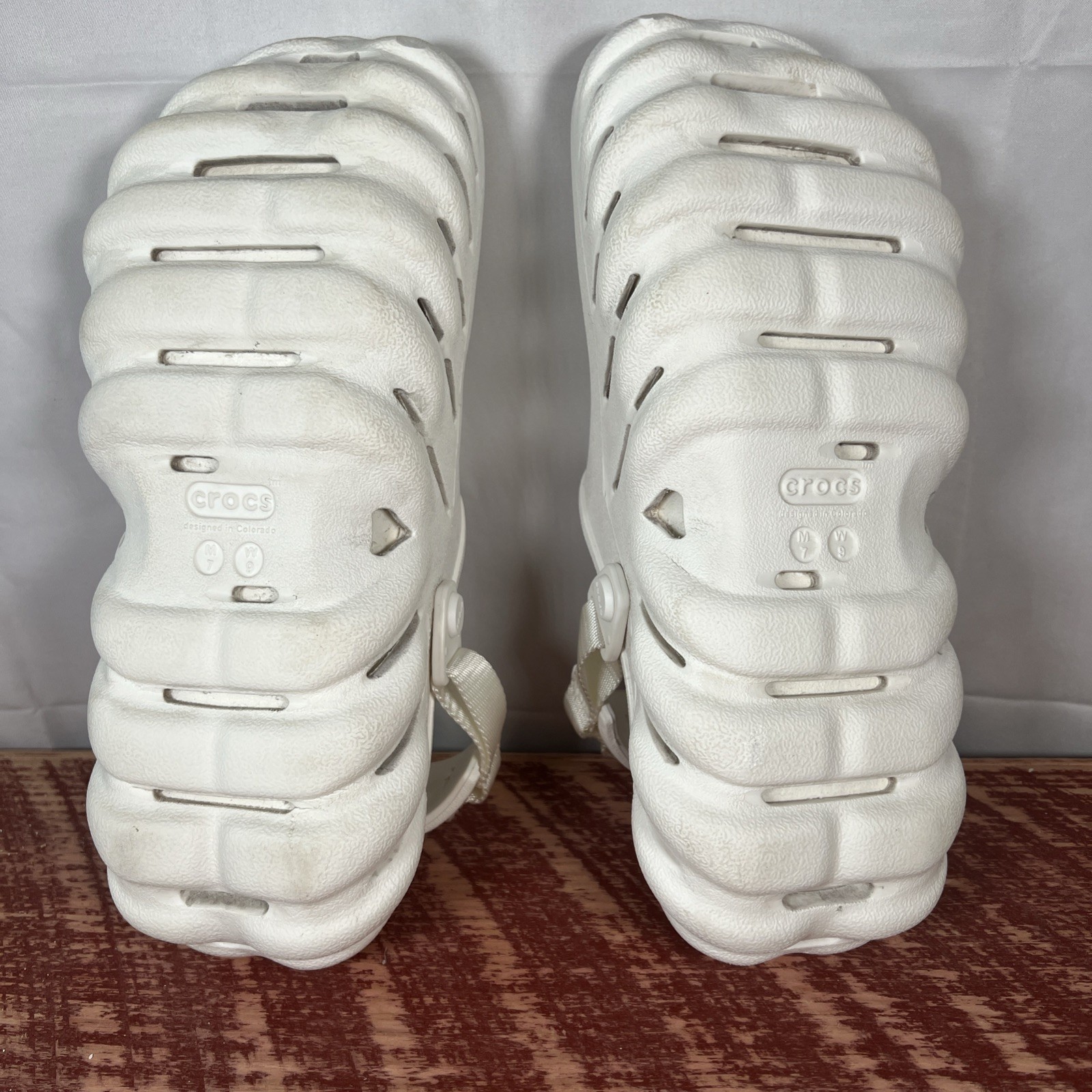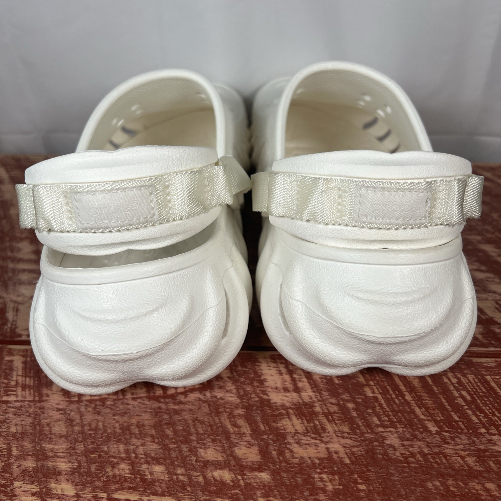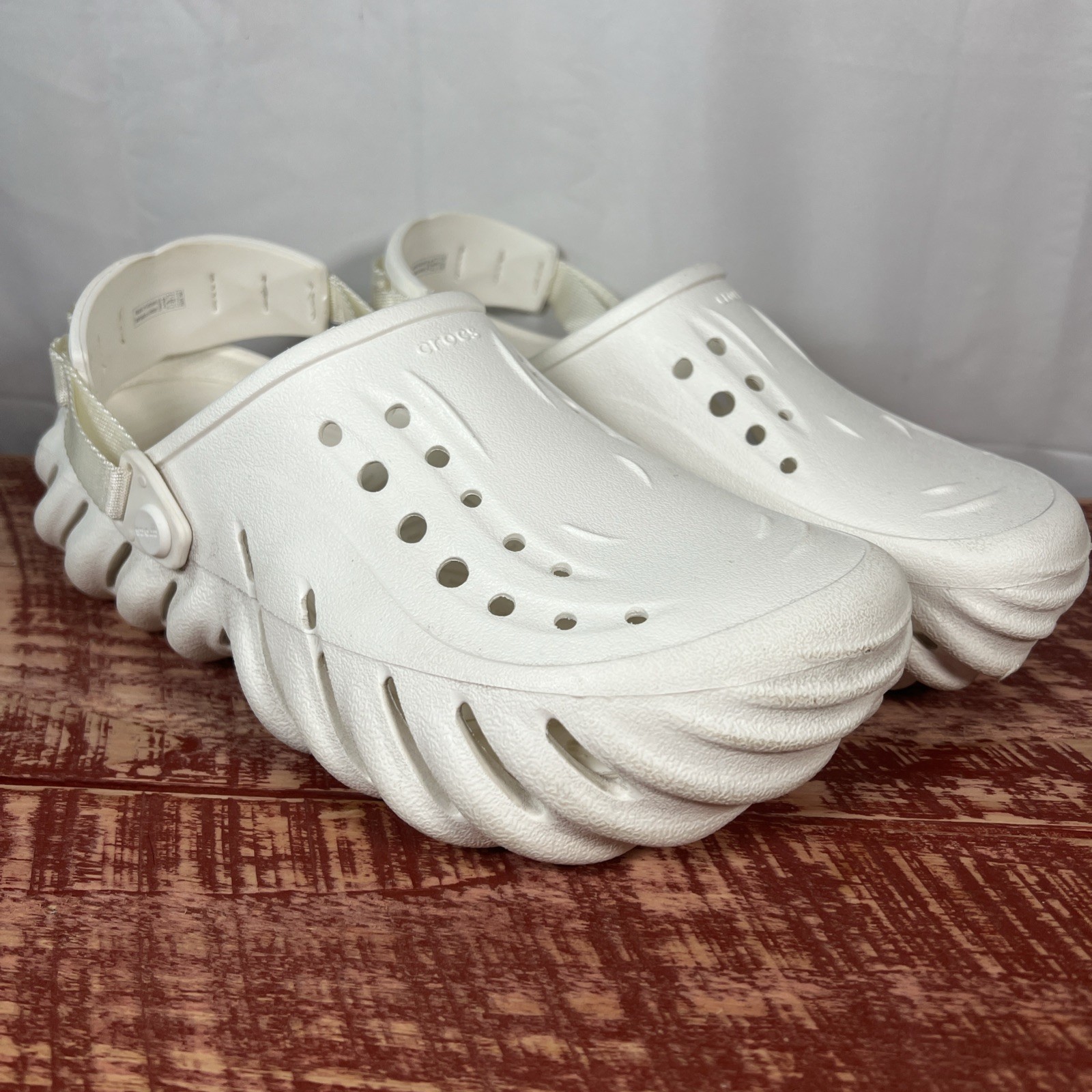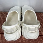 The Crocs Echo Clog Sandals in white are a versatile and comfortable option for casual wear. With a slip-on style, rubber upper, and outsole, these sandals are easy to put on and durable for everyday use. The unisex sizing makes them suitable for both men and women, and the brand's reputation ensures quality and style. Perfect for a comfortable and stylish summertime look. Men’s 7 / Women’s 9