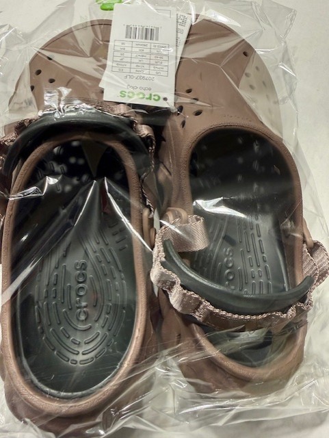 The Crocs Echo Clogs Shoes are a unisex slip-on style shoe designed for casual comfort. These brown clogs feature a solid pattern with a closed toe design and a rubber outsole for durability. With a size 7 for men and 9 for women, these shoes offer a standard width and are suitable for all seasons. Crocs are known for their comfortable and breathable design, making them a versatile option for everyday wear. New with tags. No box when purchased. Original tags.