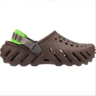 Crocs Echo Sandstorm Coffee Brown w/ Green Clog Shoes Comfort Slides Men Size 12