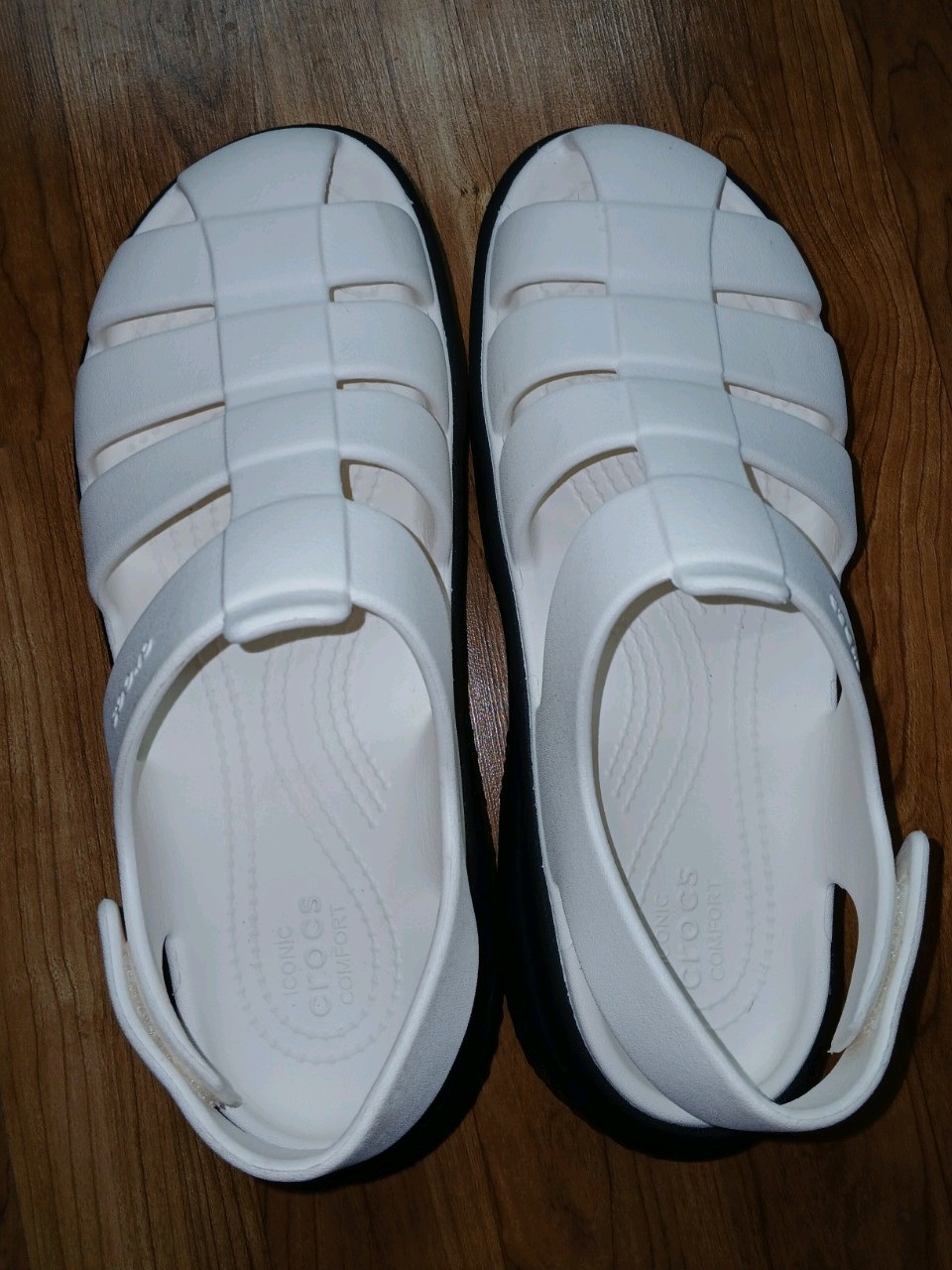 Excellent condition -- worn only around the house. These sandals are ideal for someone with flat feet or low arches.