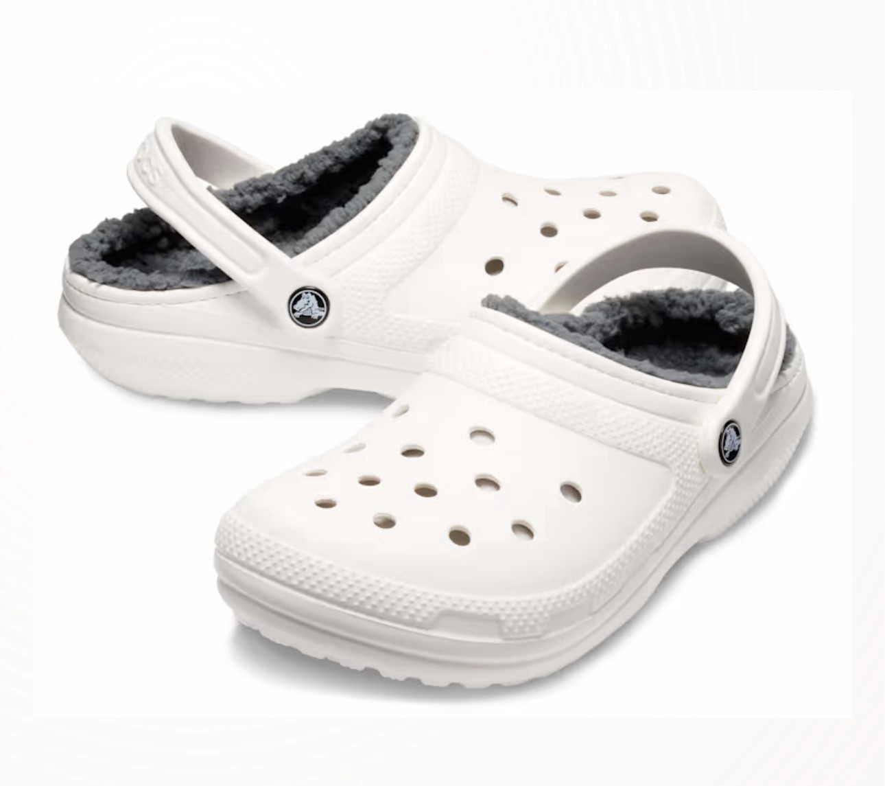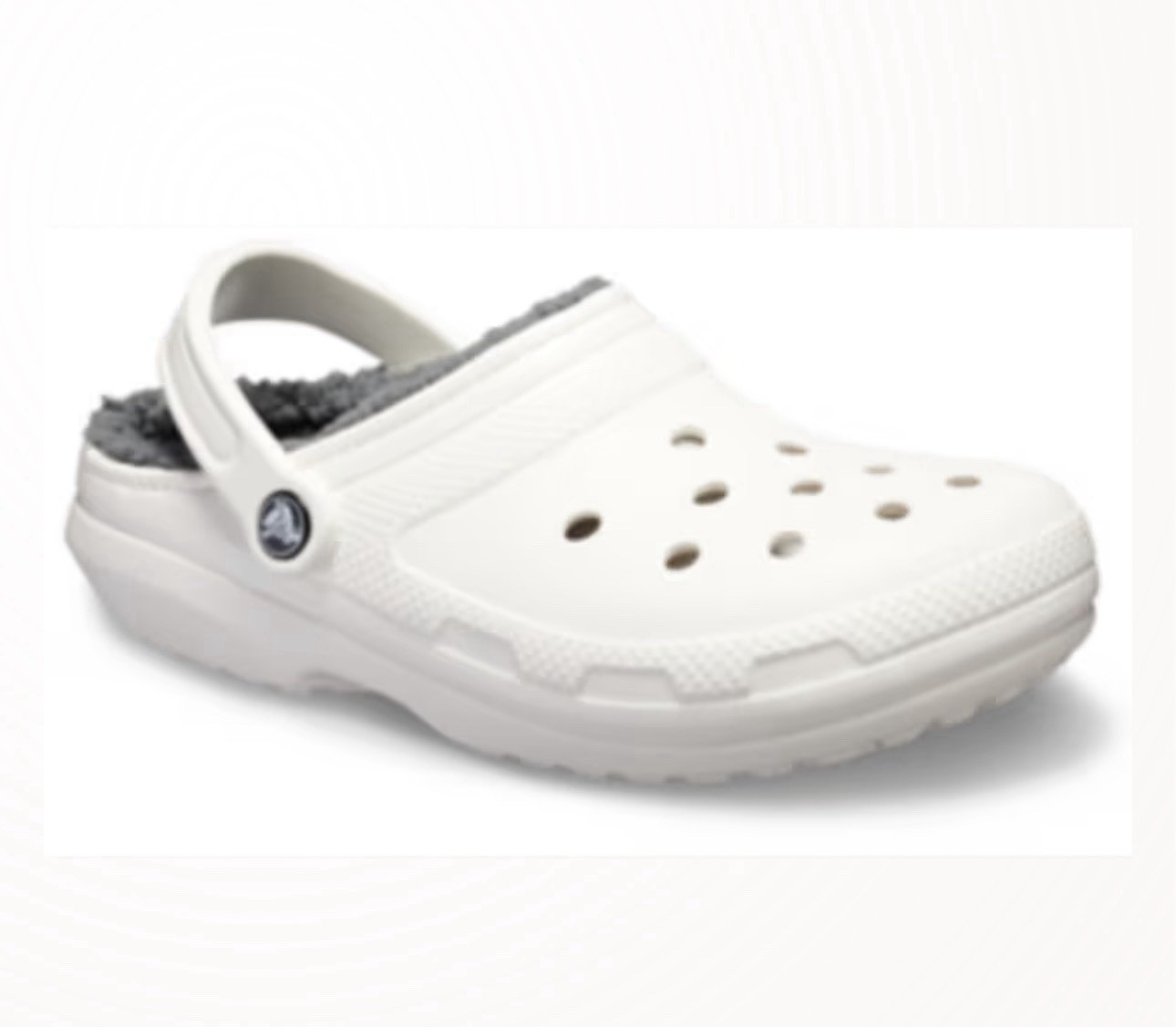 The product is a pair of Crocs Fleece Lined White Clogs in size 8m 10w. These slip-on shoes feature a round toe shape and are perfect for casual occasions. The fleece lining provides extra warmth, making them ideal for all seasons. The rubber outsole material ensures durability and comfort. With a solid white color and lined accents, these Crocs are a stylish and practical choice for anyone looking for a cozy and versatile shoe option.