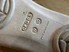 Step into summer with these Crocs Kelli sandals in white. These slip-on sandals feature a flat heel, making them perfect for casual occasions. The rubber outsole provides durability, while the lightweight and breathable design ensures maximum comfort. The Crocs Kelli sandals also come with a stylish logo accent, adding a touch of flair to your outfit. These sandals are available in US size 10 and UK size 8, with an EU size of 41. The upper material is also made of rubber, while the insole is also designed with breathability in mind. Whether you're running errands or going to the beach, these Crocs Kelli sandals are the perfect addition to your wardrobe.