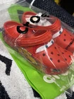 The Crocs Lightning McQueen 6m 8w Limited Edition shoes are a colorful and fun addition to any man's wardrobe. Featuring a closed toe design and slip-on closure, these clogs are perfect for casual occasions during the summer and spring seasons. Made with softshell fabric and a rubber outsole, these shoes offer comfort and style. The limited edition design with the character Lightning McQueen from the Cars theme adds a unique touch to these red Crocs. Whether you're a fan of Lightning McQueen or just looking for a colorful and comfortable shoe option, these Crocs are a standout choice. No light up.