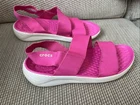 These Crocs LiteRide Stretch sandals are the perfect addition to your summer footwear collection. With a slip-on closure and flat heel style, they provide both comfort and convenience. The solid pink color and Crocs logo accents make them a stylish choice for any casual occasion. These sandals are designed with a comfort strap and stretch features, making them perfect for women's size 8. Whether you're running errands or going to the beach, these Crocs LiteRide Stretch sandals are a must-have. Add them to your cart now and experience the ultimate comfort and style.