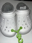 Elevate your comfort with the Crocs Ralen Lined Clog, a perfect blend of cozy and casual for both men and women. These size 4 unisex clogs boast a plush faux fur insole, ensuring your feet stay warm and cozy in any setting, from a casual stroll to a leisurely travel adventure. The durable rubber upper and outsole offer lasting comfort and support, making these clogs a reliable choice for any season. The classic white color pairs effortlessly with any outfit, while the solid pattern and slip-on closure ensure a sleek, no-fuss look. Whether you're lounging at home or on the go, these rare Crocs clogs are the ultimate in comfort and style for the everyday individual.