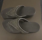 Crocs Monterey Diamante Womens Size 9 Black Thong Flip Flop Wedge Sandals 206343