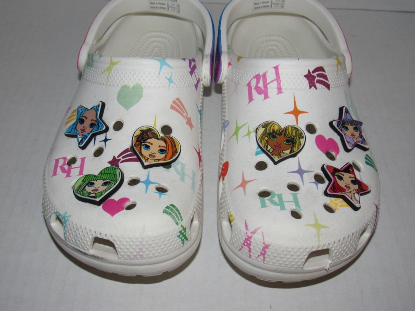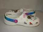 Crocs Rainbow High White Classic Clog Shoes 208117-90H. Youth Junior Girls Size 6. In used condition. From smoke free home.