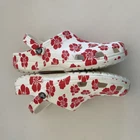 Crocs Resort White with Red Hawaii Floral Hibiscus all over Print Clogs size Men 10 / Women 12