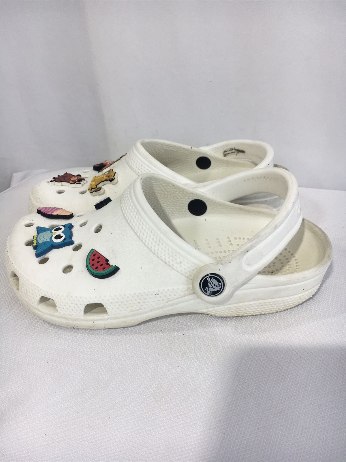 Crocs Sandals Womens 7 Classic Clogs White Slip On Flats With Charms. See Pictures .SM3
