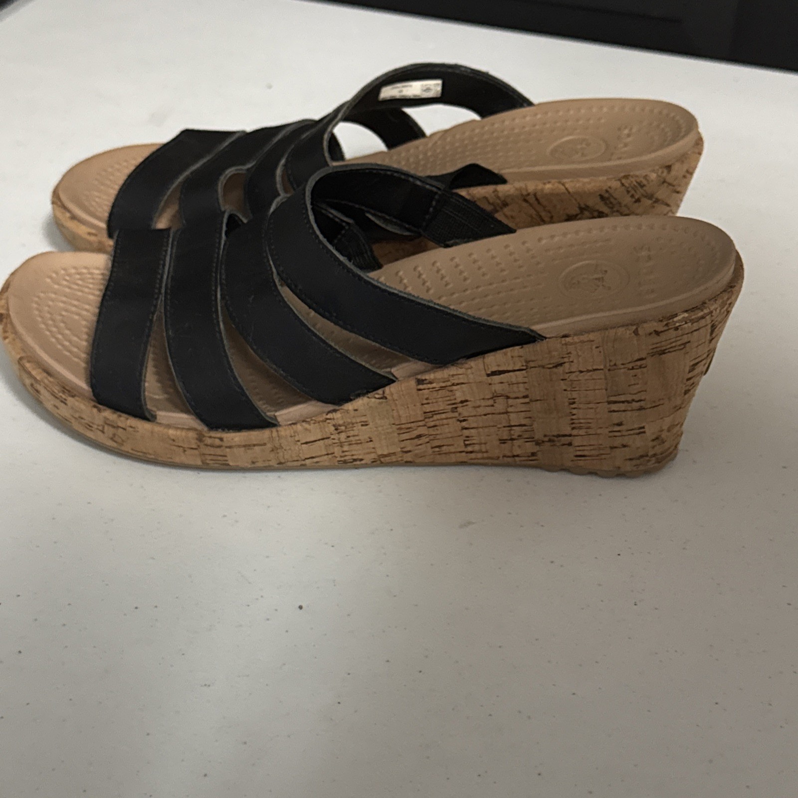 These Crocs sandals are super comfy and stylish! The cork wedge gives just the right lift, and the strappy design keeps them secure. Even though they're preowned, they look almost new—super clean and well-maintained. Perfect for casual outings or running errands. Love how lightweight they are, and the size 9 fits true. Great find!