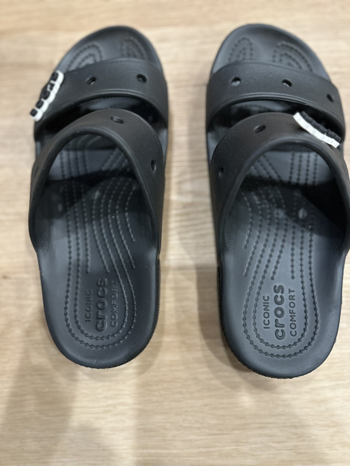 Experience the perfect blend of comfort and practicality with these Crocs Classic Black Slides. Designed with a timeless solid pattern and the iconic Crocs logo accent, these sandals offer a sleek yet understated style that's versatile for any casual or travel occasion. The synthetic upper material and lightweight design ensure a comfortable fit, while the durable rubber outsole and lining provide waterproof protection and long-lasting wear. These unisex slides are size 7 and feature a slip-on closure for easy wear. The breathable material and water-resistant capabilities make them ideal for those on-the-go moments or relaxed sunny days at the beach or pool. Complete your footwear collection with these reliable and classic Crocs that promise to deliver comfort and style without compromise.