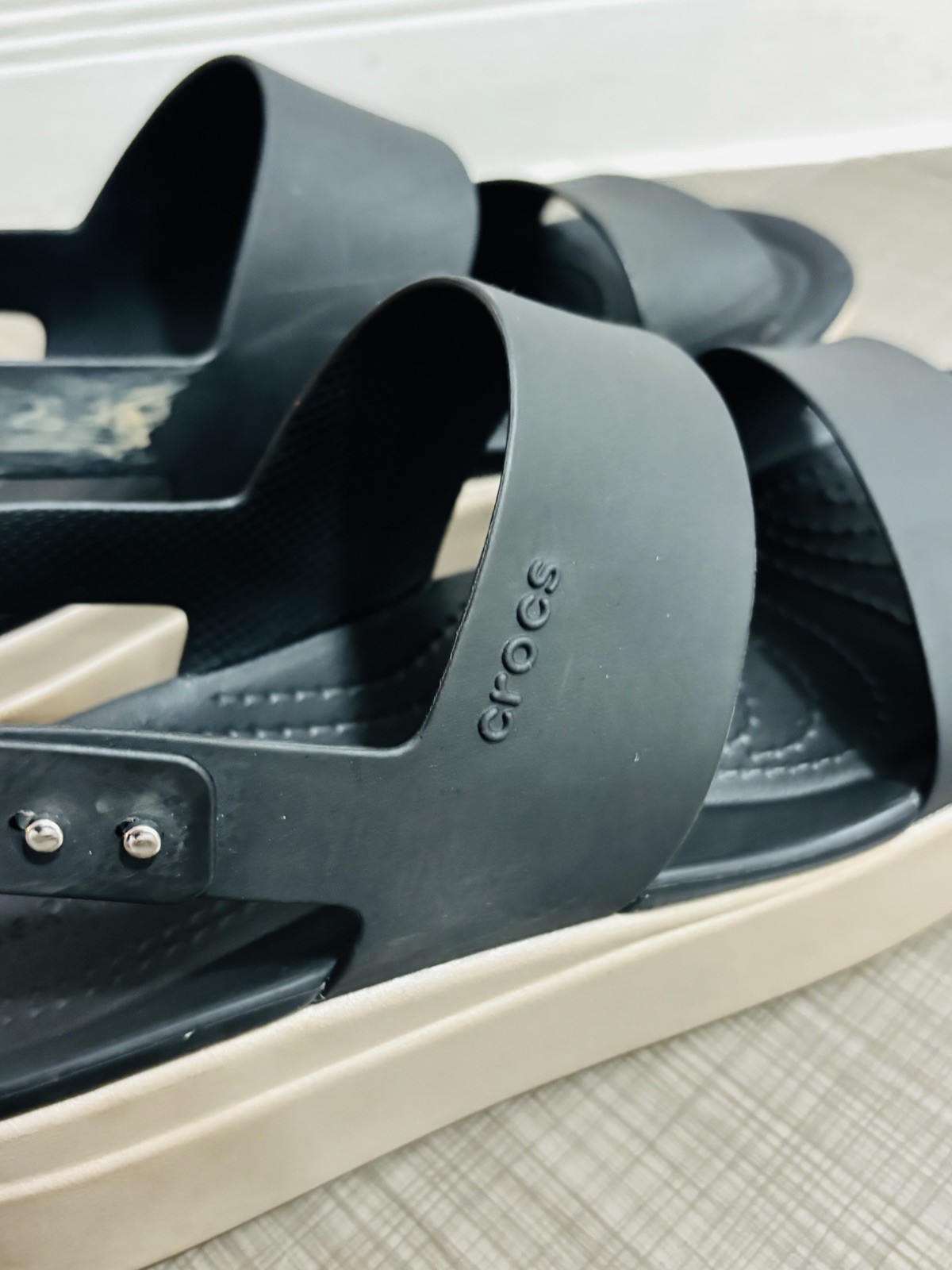 Crocs Womens 8 LiteRide Brooklyn Sandals Wedge Platform black Ankle Strap Size US 8 Some scratches on the strap. Used condition. Fast shipping. Check out my other items. Thank you