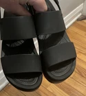Crocs Women’s Brooklyn Low Wedge Sandals 9 Black . Condition is Pre-owned. Shipped with USPS Ground Advantage.