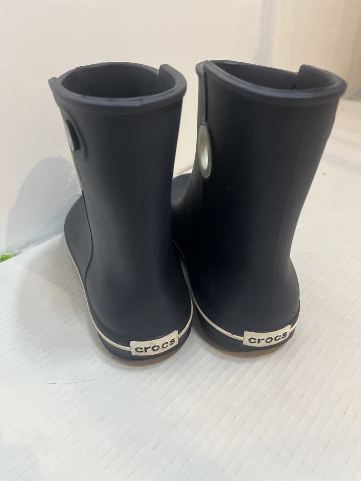 Crocs Women’s Jaunt Shorty Navy Rain Boot Size 7. Condition is Pre-owned. Shipped with USPS Ground Advantage.