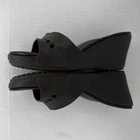 Elevate your shoe collection with these stylish slip-on wedge sandals from Crocs. Crafted with a solid black rubber upper and a comfortable mid-height wedge heel, these sandals are perfect for any occasion. The Kadee model features a logo accent on the top strap and a slip-on closure for easy wear. The synthetic lining and rubber insole provide all-day comfort, while the rubber outsole ensures durability and traction. These sandals are versatile enough to be worn in any season and are a great addition to any wardrobe. Don't miss out on the lightweight and comfortable design of the Crocs Kadee slip-on wedge sandals. 100% CUSTOMER SATISFACTION IS OUR GOAL! Our items are always carefully examined for condition, measured if necessary, and photographed in a climate controlled and smoke-free environment. We make every attempt to accurately describe and clearly picture the items we have for sale. Please, ALWAYS view all of the photos. We value your business and our goal is your complete satisfaction. FAST SHIPPING All items are packaged with care and shipped out the same or next business day via USPS, FEDEX, or UPS with tracking numbers so you are always informed. RETURNS We offer a 30-day return policy. All items must be unused and unopened in the condition in which they were received, with original packaging, and all accessories included for return. REVIEWS - CUSTOMER SATISFACTION - COMMUNICATION We aim to make you happy. After you receive your shipment, please leave a positive review . If you have concerns or questions about your order, please contact us so we can resolve the issue. We will do our best to make you satisfied. THANK YOU FOR YOUR BUSINESS!